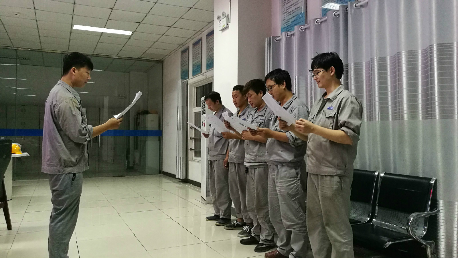 建安分公司職工檢修前傳唱企業(yè)之歌激發(fā)干事創(chuàng)業(yè)精氣神